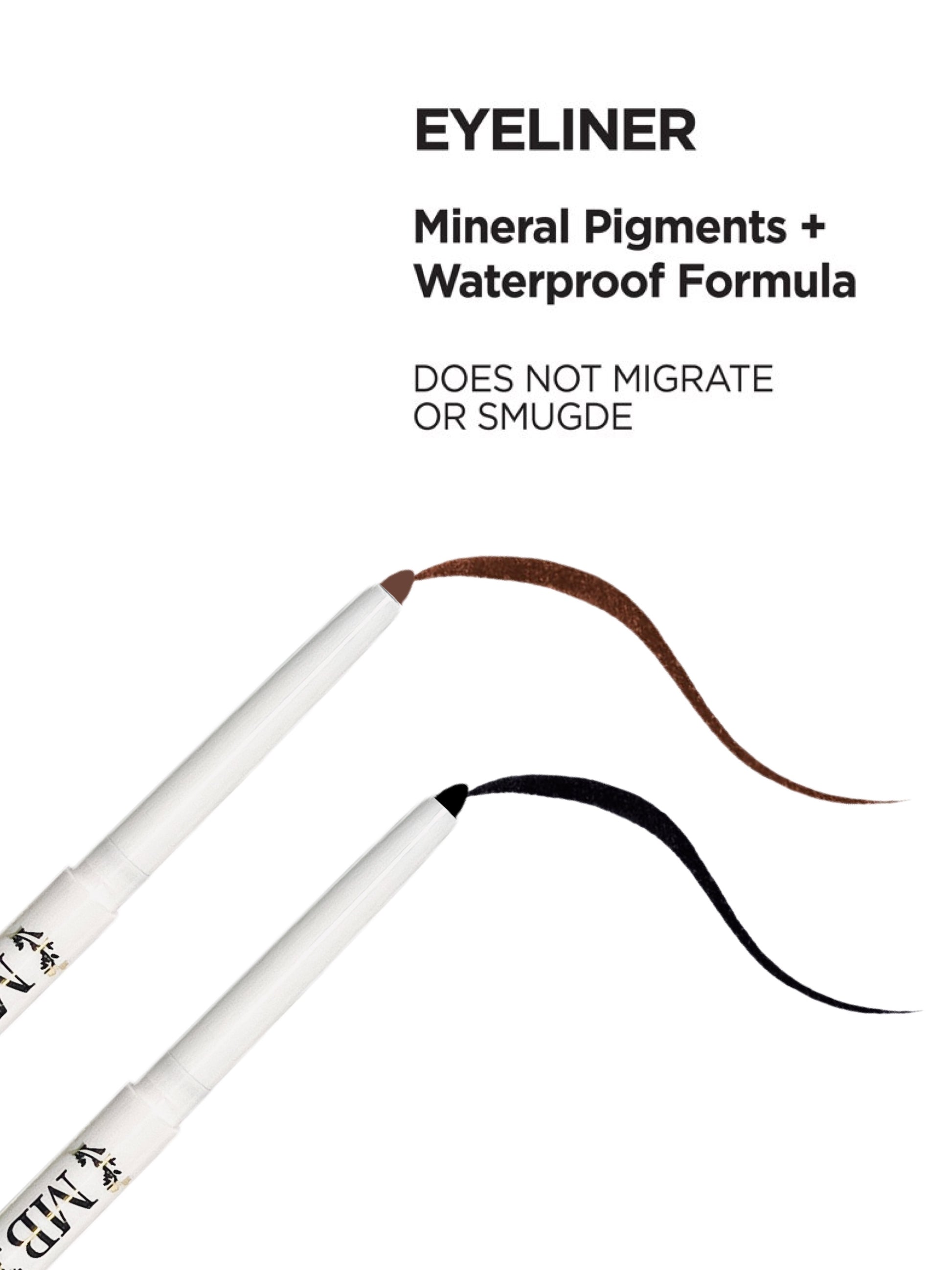 This waterproof, smudge-proof eyeliner glides on smoothly to deliver highly pigmented color that brightens, defines and sets in 30 seconds. The twist-up pencil includes a built-in sharpener for creating ultra-fine lines. Available in 2 shades: Black & Brown